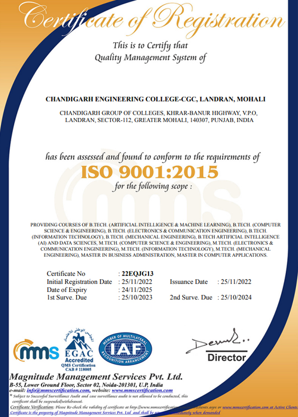 Chandigarh Engineering College-CGC, Landran, Mohali has a wide array of services owing to which the college wins different awards and accolades throughout the year. The institute has various accomplishments in galore that reflect the quality of education and services it claims to provide.