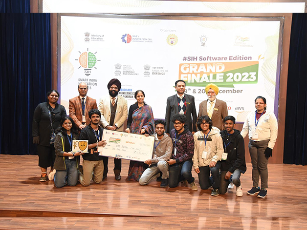 33 teams consisting of more than 200+ students including their mentors from across India, hailing from Chhattisgarh, Tamil Nadu, Odisha, West Bengal, Maharashtra, Rajasthan, Madhya Pradesh, Uttar Pradesh, Uttarakhand, New Delhi, Telangana and Karnataka converged at Nodal Center, Chandigarh Engineering College-CGC, Landran, Mohali to compete in the grand finale of Smart India Hackathon 2023 (SIH 2023) - software edition, on 19th & 20th December, 2023. SIH 2023 offered 231 problem statements received from 51 departments of 25 Ministries. 12,000+ participants participated in national level, SIH 2023 grand finale. A total of 1,282 teams were shortlisted for the grand finale to provide solutions on various themes including Space Technology, Smart Education, Disaster Management, Robotics and Drones, Heritage and Culture etc. Prime Minister Shri Narendra Modi addressed and interacted with the participants during the finale via video conferencing.